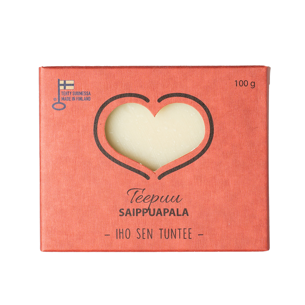 Teepuu saippuapala hellii epäpuhdasta ihoa! Sopii erittäin hyvin kasvoille ja koko vartalon pesuun. Muodostaa pehmeän ja kermaisen vaahdon ja käytön jälkeen iho tuntuu hyvin hoidetulta ja kosteutetulta.