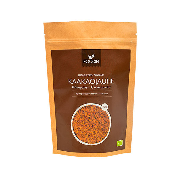 Foodinin Perulainen Criollo-alkuperäislajikkeen kaakaosta kylmäpuristettu kaakaojauhe hurmaa pehmeällä maullaan ja tuoksullaan. Kaakao, jota ei ole kuumennettu on yksi kompleksisimmista ja ravinteikkaimmista raaka-aineista maapallolla. Jopa 10% sen painosta on antioksidantteja ja se sisältää kaikki kaakaon tunnetut terveysvaikutukset.