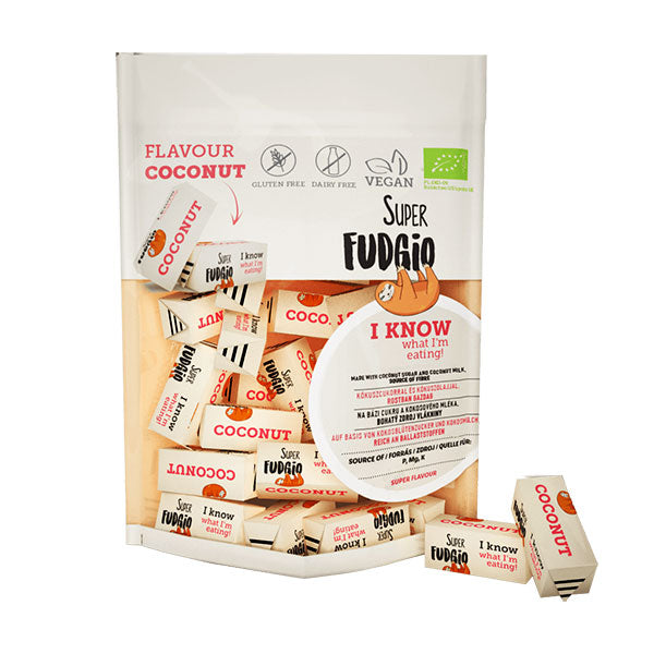 Super herkullinen, ihanan pehmeä ja maistuva kookosfudge eli toffee on aidoista raaka-aineksista valmistettu lisäaineeton ja vegaaninen herkku. Superfudgio toffeet sopivat useille ruoka-aineallergisille: valmistuksessa on käytetty mm. kookosmaitoa ja -sokeria.Täydellinen herkku makeanhimon iskiessä.GLUTEENITON. LAKTOOSITON. VEGAANI.