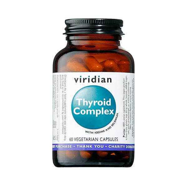 Viridianin Thyroid Complex on laadukas kilpirauhasen toiminnalle tärkeimpien vitamiinien- ja hivenaineiden yhdistelmä. Jotta kilpirauhanen pystyy hoitamaan tehtävänsä kunnolla, tarvitsee se tiettyjä ravintoaineita esim. jodia ja seleeniä. Lisäksi valmisteessa on tärkeitä B-ryhmän vitamiineja, A-vitamiinia sekä sinkkiä.