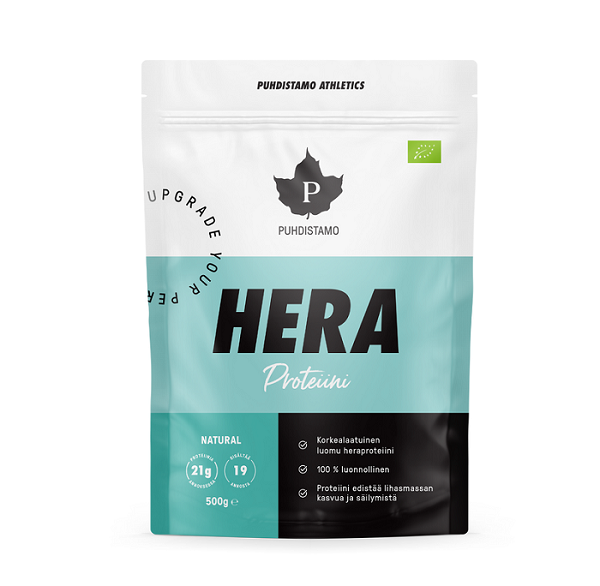 Puhdistamon Heraproteiini on luonnollinen lisä päivittäisen proteiinitarpeen saavuttamiseksi. Proteiini edistää lihasmassan kasvua.