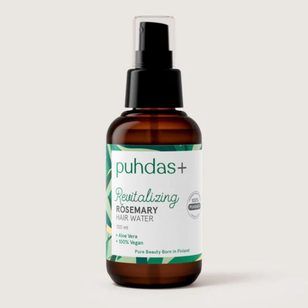 Rosmariinia ja Aloe Veraa sisältävä Puhdas+ hiusvesi kosteuttaa kuivia hiuksia sekä auttaa säilyttämään terveen hiuspohjan. Käytä hiusvettä suihkuttaen sitä pyyhekuiviin hiuksiin tai suoraan hiuspohjaan. Rosmariini hiusvesi on ihana tapa tuoda luonnon kauneus osaksi päivittäistä hiustenhoitorutiiniasi. Se tehostaa hiusten kasvua ja tekee hiuksista elinvoimaiset.Rosmariinin verenkiertoa stimuloivat ominaisuudet, kyky vähentää hiustenlähtöä, antioksidanttiset voimat sekä kyky lisätä hiusten kiiltoa ja vahvuutta tekevät siitä tehokkaan ainesosan hiustenhoidossa. Tämä luonnollinen yrtti auttaa ylläpitämään ja parantamaan hiustesi terveyttä ja kauneutta.Helppokäyttöistä suihketta voi käyttää sekä kosteisiin että kuiviin hiuksiin.Tuote on valmistettu Puhdas+ tehtaalla Tuusulassa.VEGAANINEN