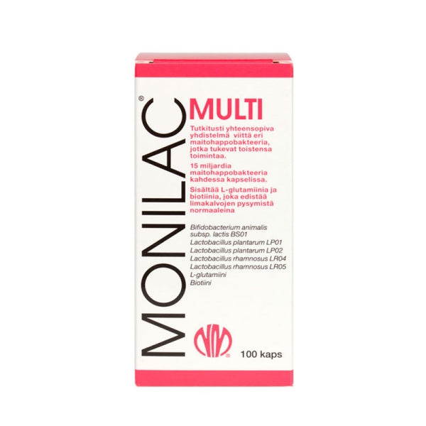100 kapselin pakkauksesta riittää reilusti päiväannoksia myös matkustettaessa. Annostusta voi säädellä ottamalla yksi tai kaksi kapselia päivässä. Kahdessa MONILAC MULTI-kapselissa on huikeat 15 miljardia elävää maitohappobakteeria!